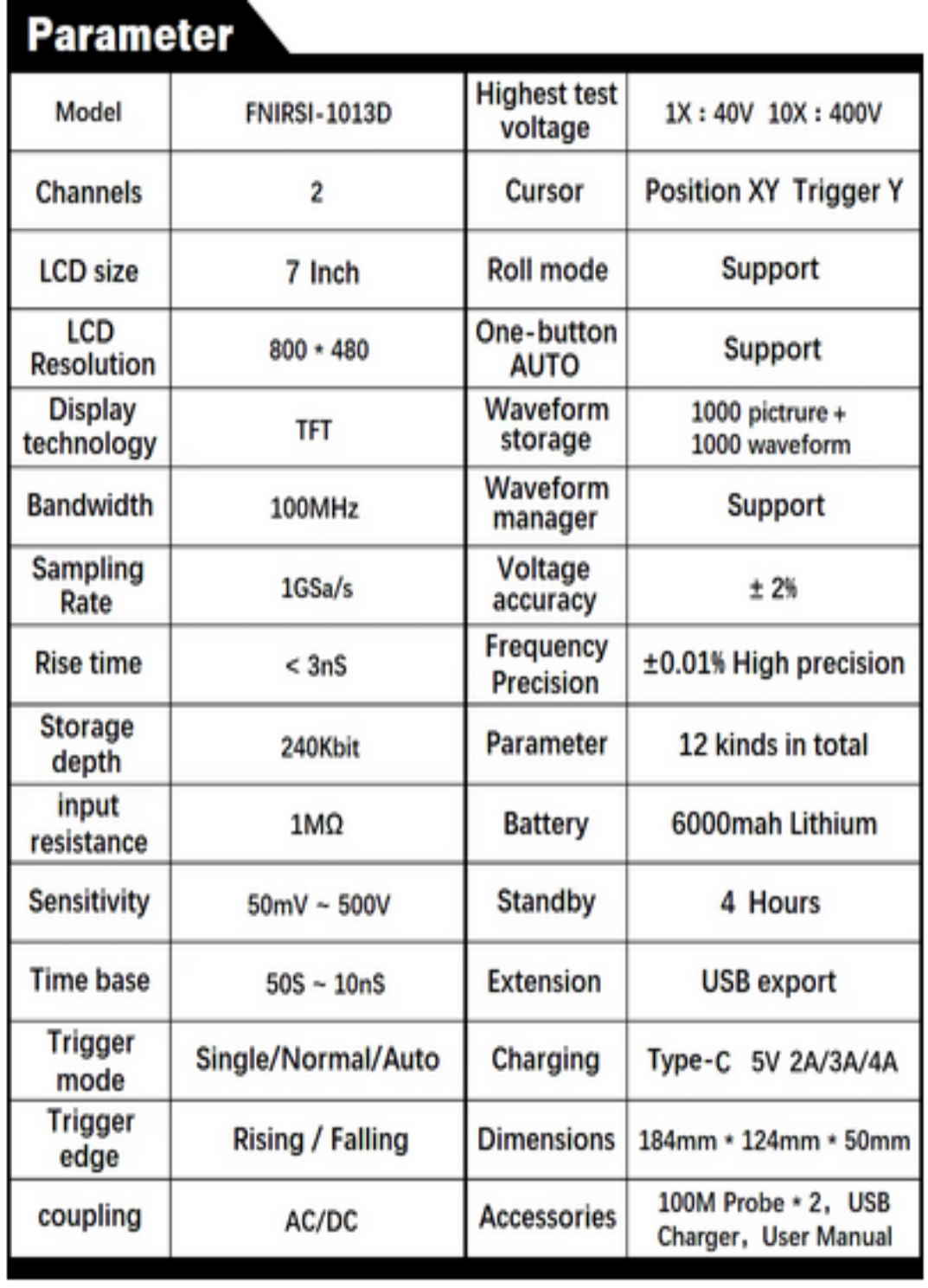 Voltage Range:±5v with x1 probe, ±50v with x10 probe and ±500v with