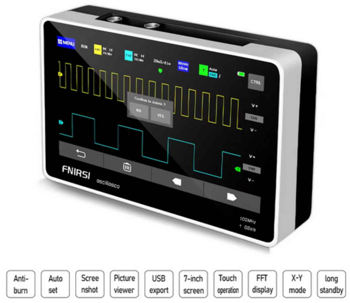FNIRSI-1014D راسم إشارة قناتين 100 ميغاهرتز + مولد إشارة
