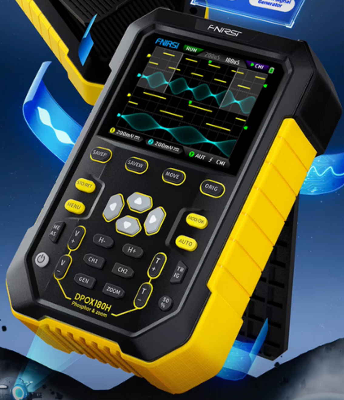 فيديو توضيحي : https://www.youtube.com/watch?v=fieC4Org1E8 راسم إشارة قناتين + مولد إشارةFNIRSI DPOX180H Dual Channel Handheld Digital Oscilloscope 180MHz-3DB 2 In 1 Function Signal Generator Fluorescence Display ZOOM |