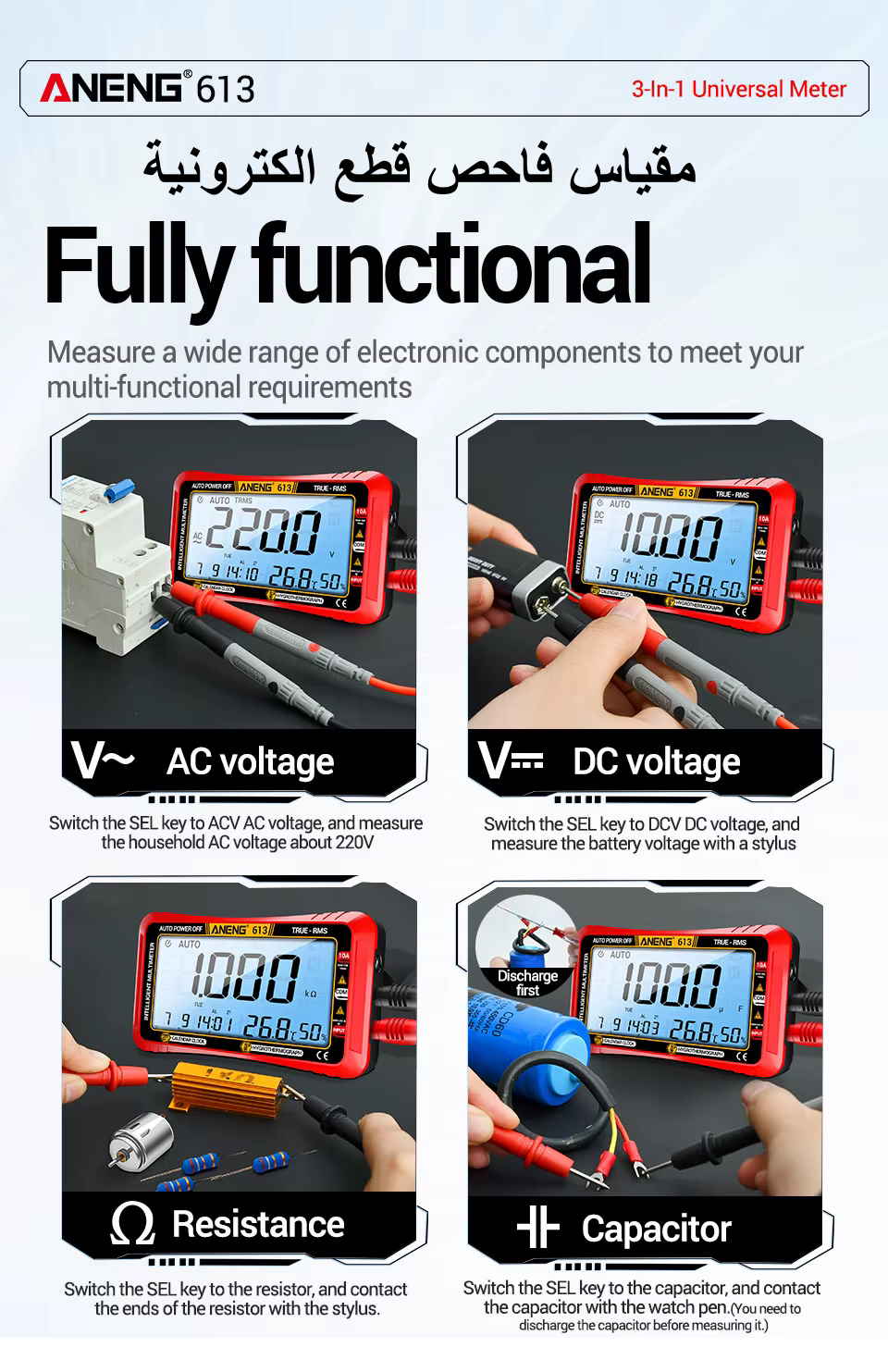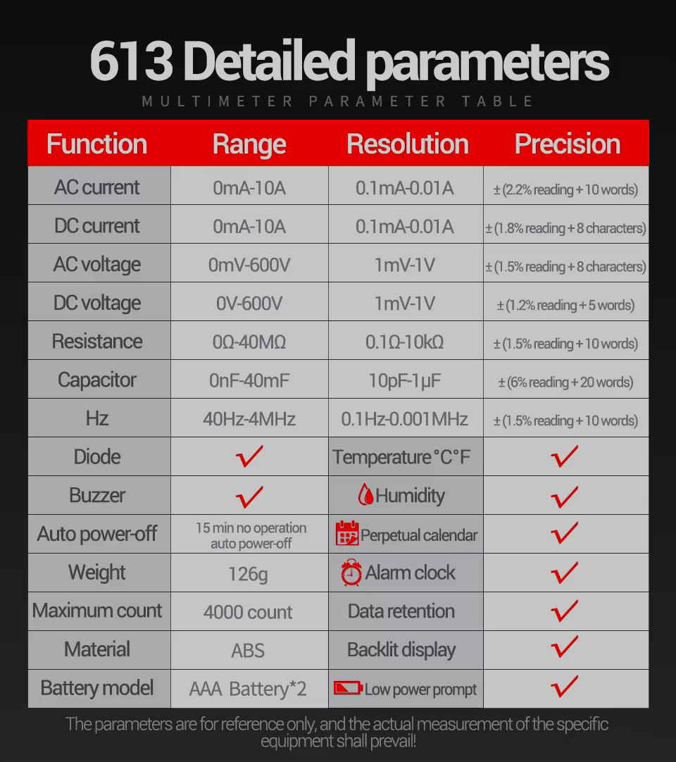 Power-off Measuring AC/DC Tester Digital Multimeter
